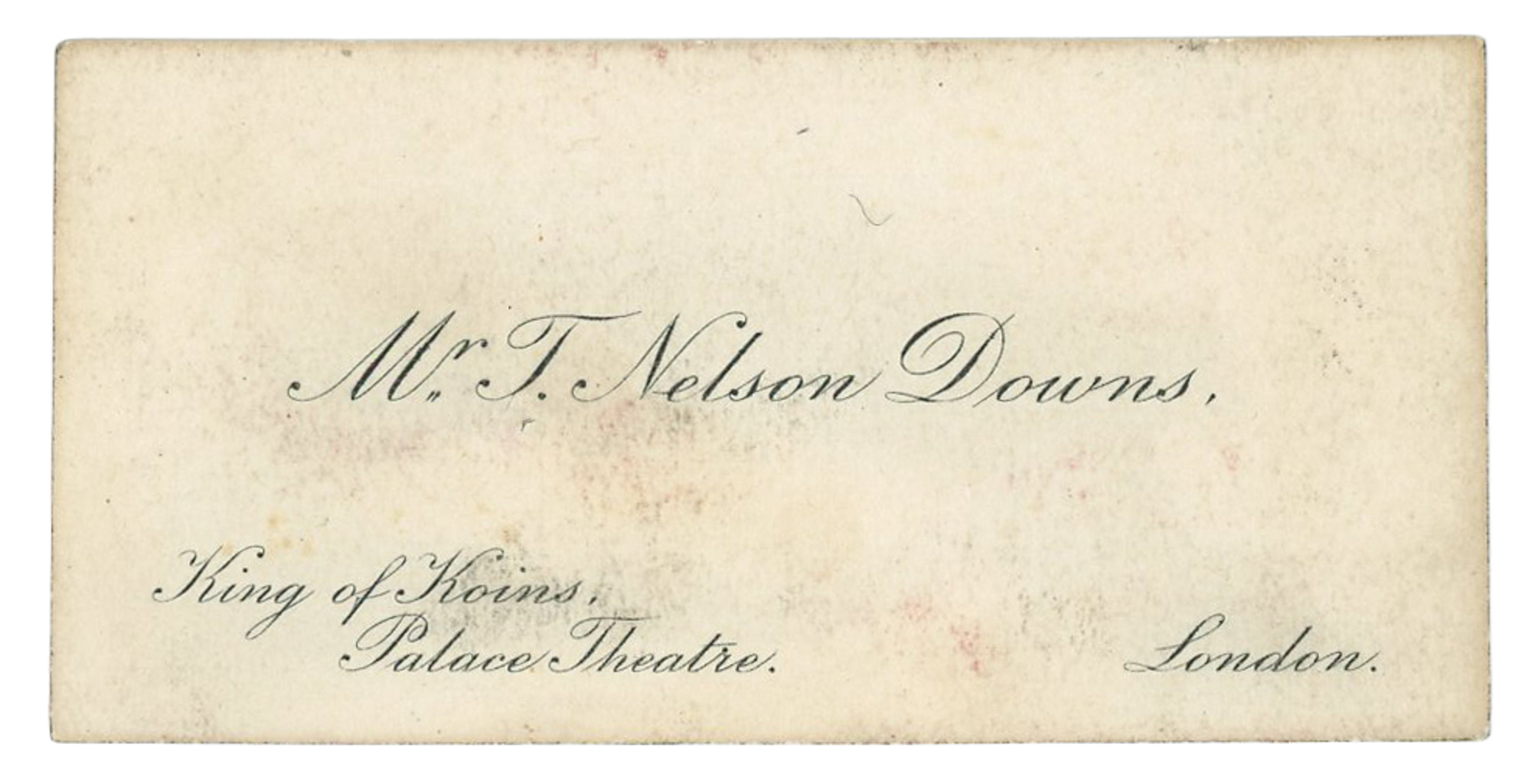 Business card for T. Nelson Downs. Some soiling, else in good condition.
