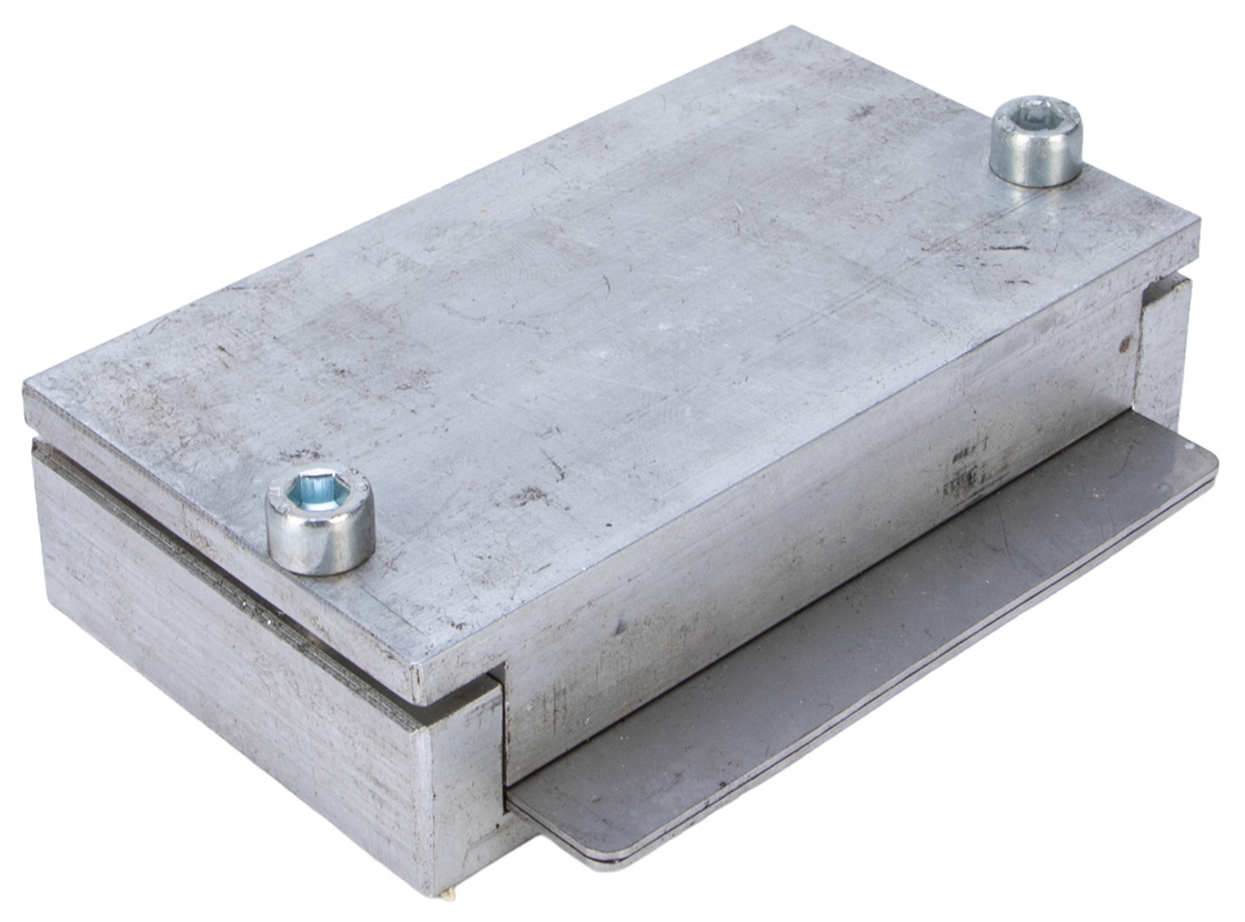 Precision stainless steel device that trims cards in a concave fashion. Shows some wear and scratches, else in very good condition.