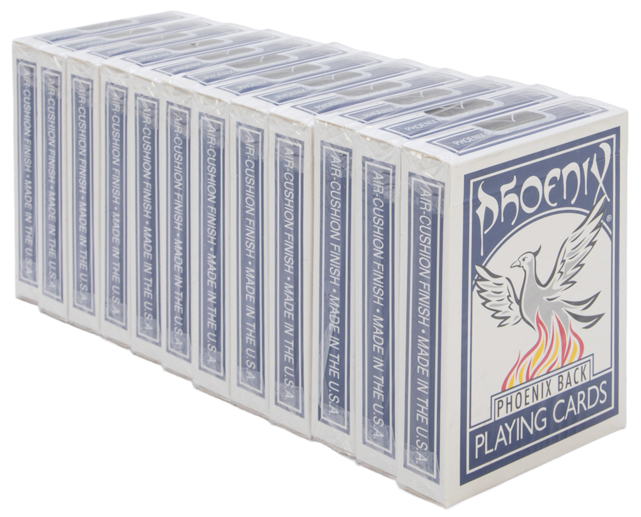A brick (12 decks) of Phoenix Back Playing Cards. Mint. Blue backs. New.