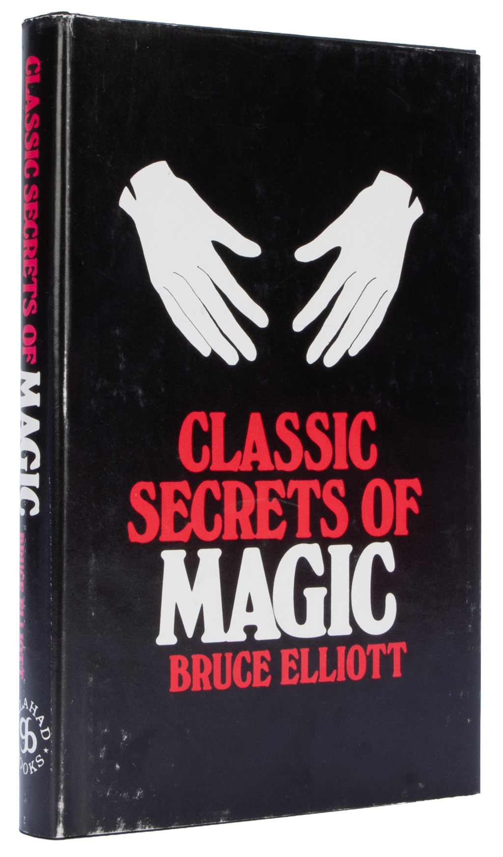 Black hardcover with white stamping on spine, pictorial dust jacket. Illustrated, 205 pages. Long considered one of the best beginner books on conjuring, with contributions from Jay Marshall, Wally Dean, and other New York magicians of the mid-20th century who were among Elliott's closest friends. Illustrated by Stanley Jaks. Mild shelf wear to jacket, else in very good condition.