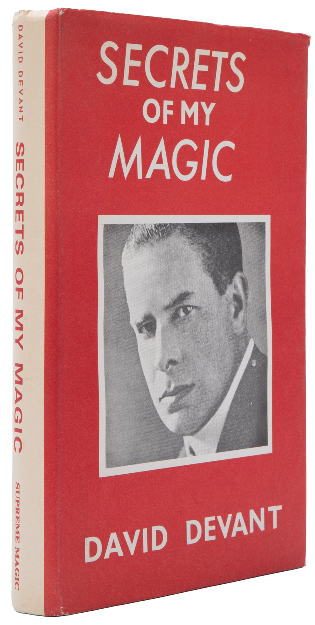 Black cloth with gilt stamping on spine, pictorial dust jacket. Illustrated, 288 pages. Mild toning and small chips to jacket, else in very good condition. Includes effects and illusions from Devant's career as well as some of his contemporaries.