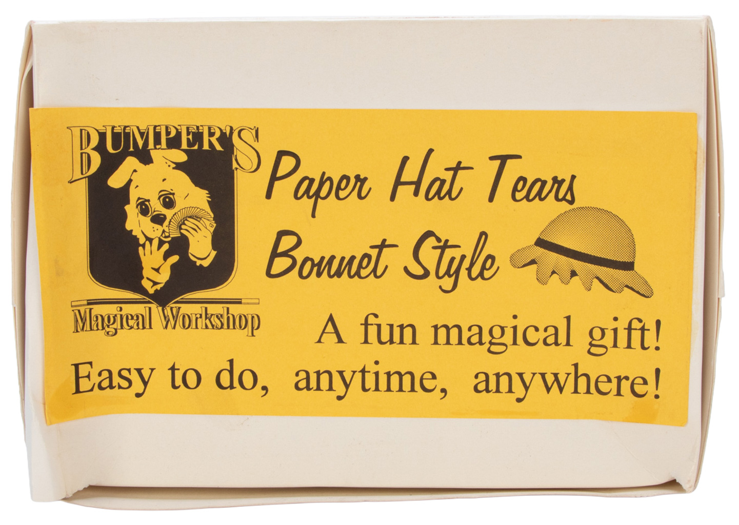 A set of nine Bumper’s Paper Hat Tears, Bonnet Style. Includes the original box and instructions. Very good condition.