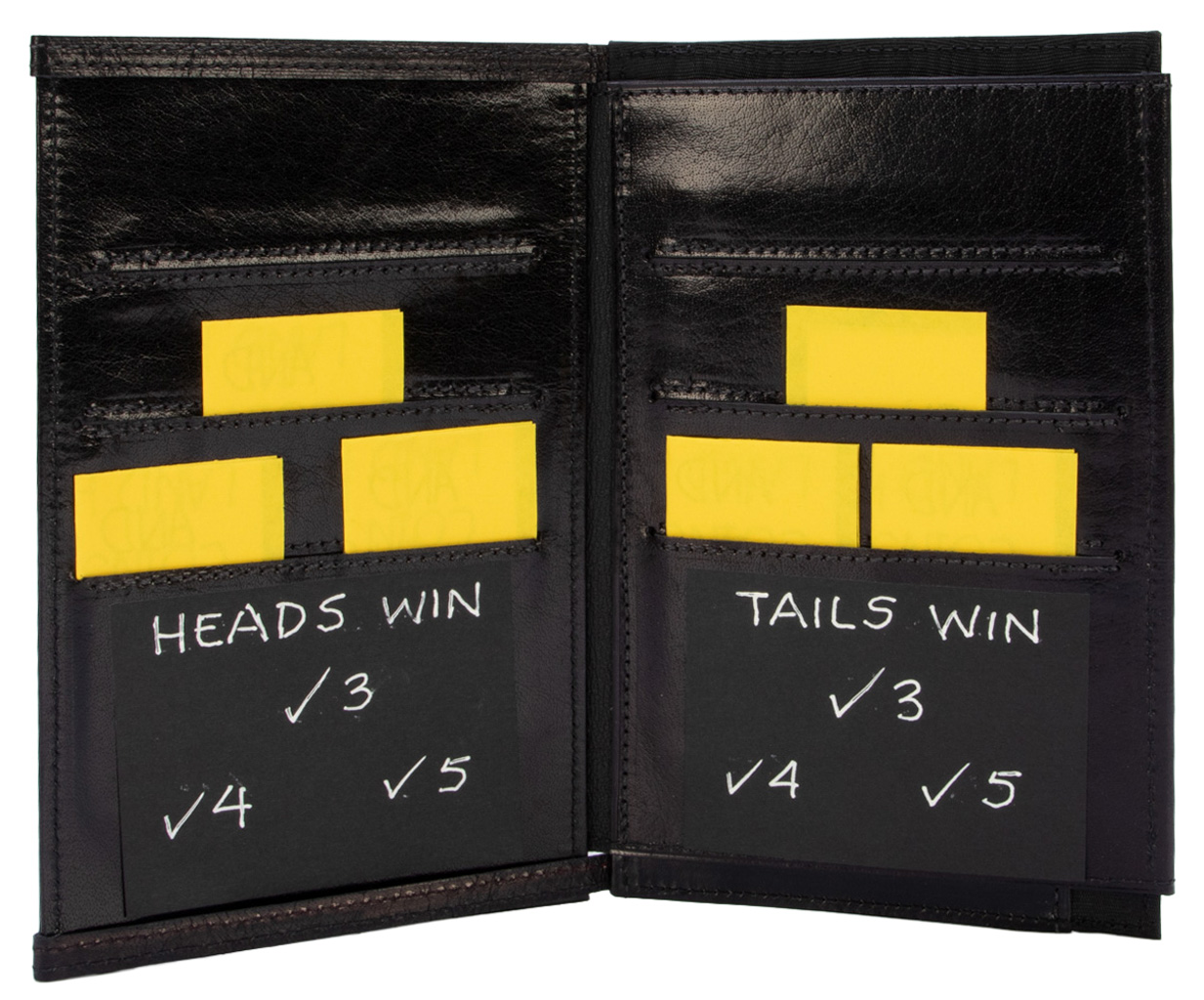 The performer removes a blank slip of paper from his wallet. After writing something on the paper, the performer refolds it and returns it to the wallet. The spectator is now handed a copy of Webster’s Dictionary and asked to locate the page containing her mentally selected word without identifying it. As she is doing so, the performer removes the folded slip of paper from his wallet and holds it high in the air for all to see. The performer now asks that she reads aloud the word that she’s been concentrating upon and its definition. The performer then asks the spectator to open the folded slip of paper and read aloud what’s written on it. It proves to be the exact word and definition the spectator has been concentrating upon. Most baffling of all, the slip of paper is in full view before the spectator reveals her word. Includes the instruction booklet. Very good condition.