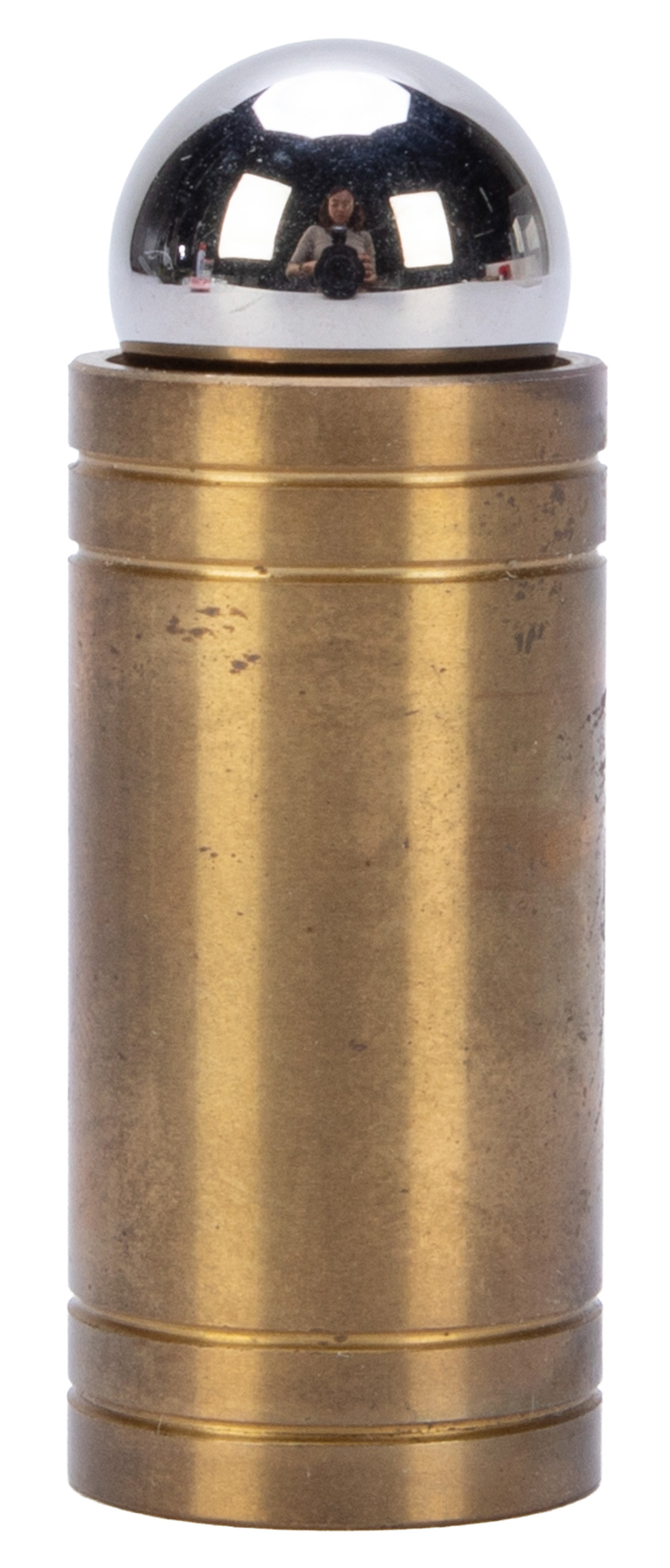 A steel ball slowly sinks into the solid mass of the brass tube. Includes instructions. Scratches to the side, else in good condition.