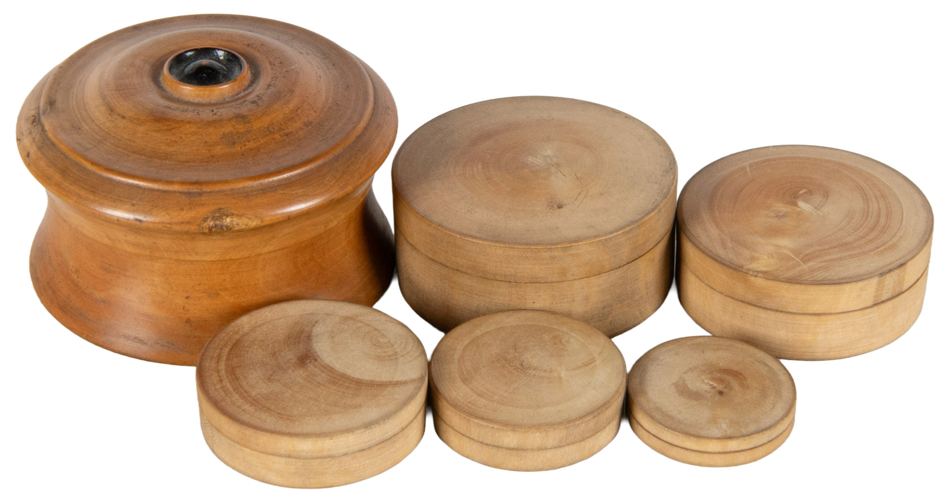 A ring or other small borrowed object appears within the innermost of four nested boxes. Beautifully turned from old boxwood with great precision, in very good condition. Note: coin slide not included, but nearly any you own will work.)