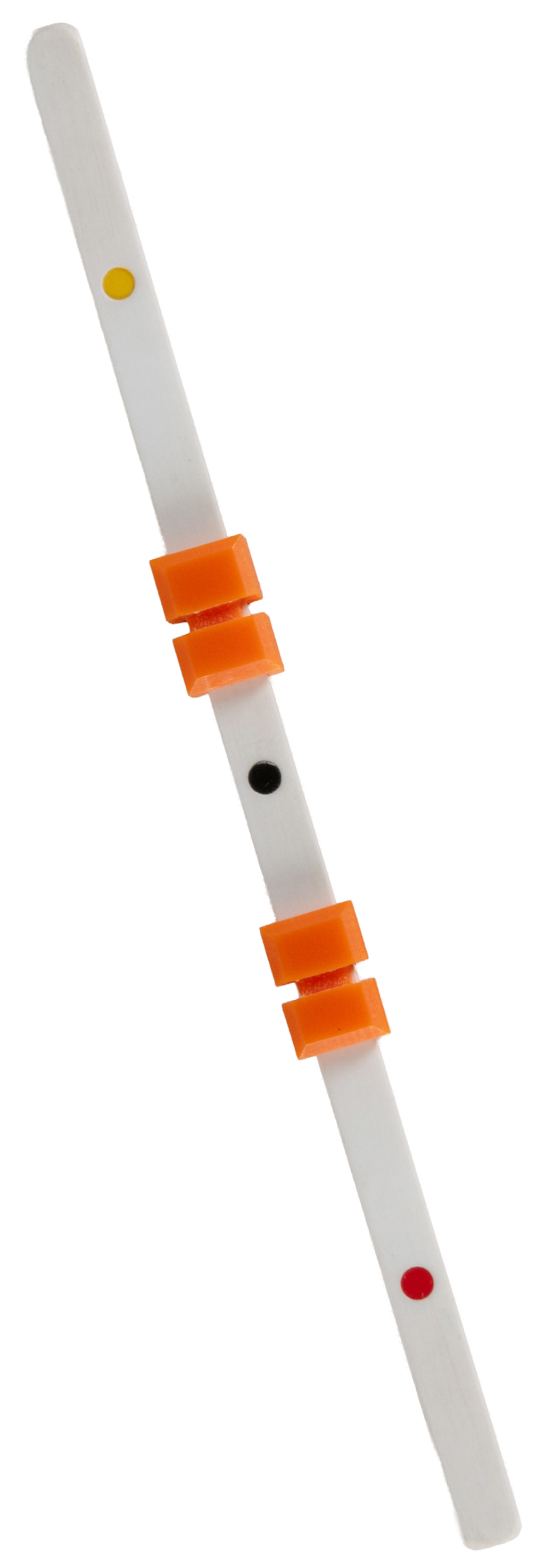 A spot paddle trick with sliding sleeves. One spot is missing, else in good condition.