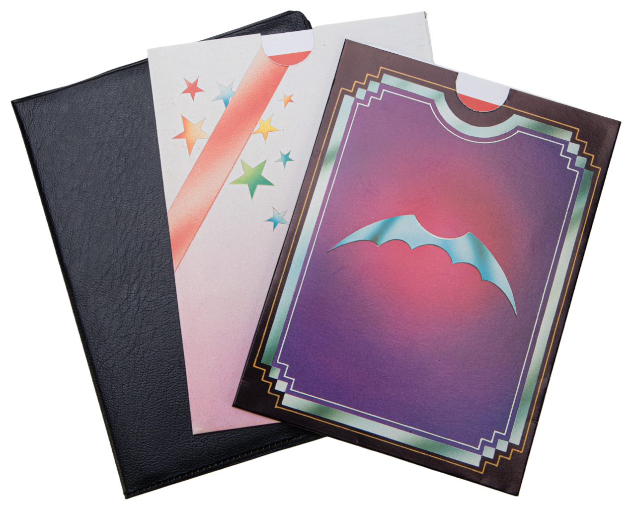 A red-backed card bearing the picture of an evil-looking vampire is taken out of its macabre envelope. Four blue-backed cards, all with the picture of a beautiful girl, are taken out from a more cheerful-looking envelope. One of these cards is put aside while the others are left to flirt with the vampire. As a result, their blue backs turn red to match the color of the vampire’s back. Furthermore, the vampire’s power of seduction proves to be so strong that the faces of all the cards turn into vampires, except the one that was set aside. Summing up, the routine begins with one vampire and four girls and ends with one girl and four vampires, the cards having changed their faces as well as their backs. Includes instructions. Very good condition.