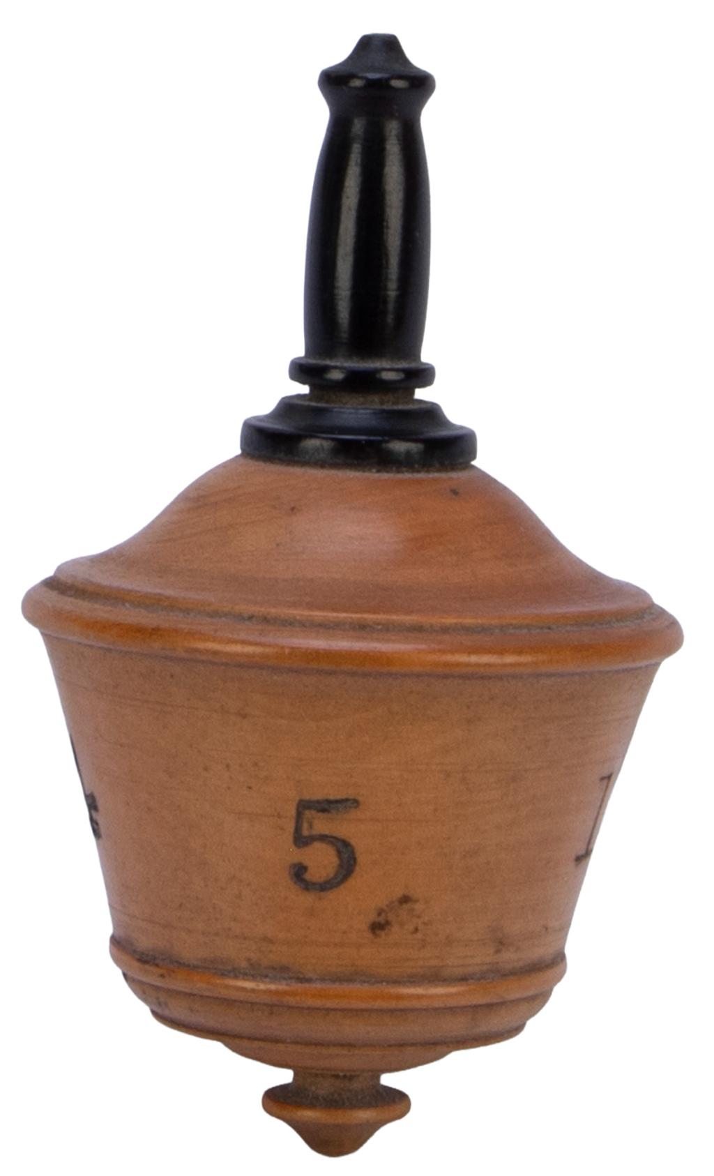 A beautifully crafted vintage boxwood forcing top that can be spun by the spectator but always lands on number five. Very good condition.