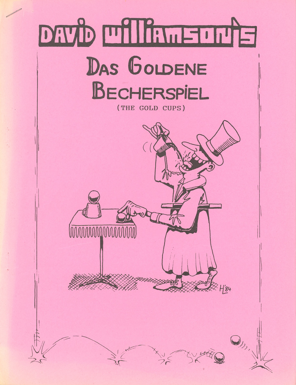Pink pictorial wrappers, illustrated, 25 pages. German language publication about Williamson's legendary Cups and Balls routine. In English. Very good condition.