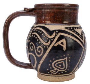 A thin pewter wizard figurine holding a cup and wand. Very good condition.