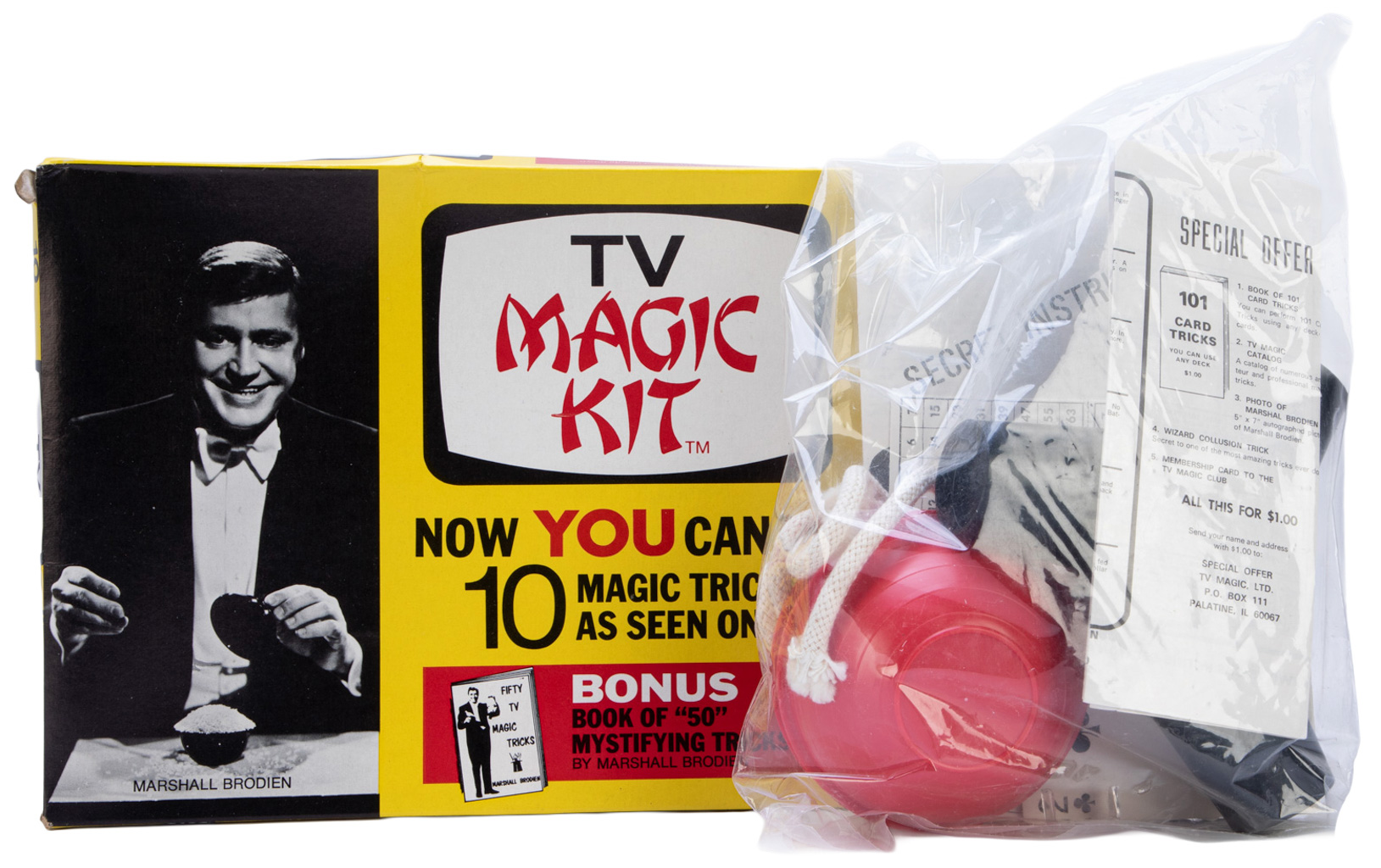 TV Magic Kit: Now You Can Do 10 Magic Tricks As Seen on TV. Tricks unopened in the original plastic bag. From the collection of The Amazing Kreskin. Very good condition.