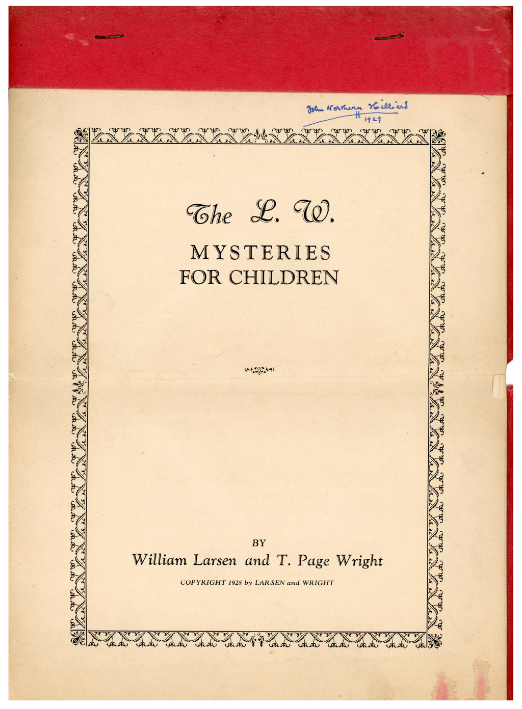 The L.W. Mysteries for Children manuscript signed by John Northern Hilliard. 14 pages. Toning and wear, else in good condition.