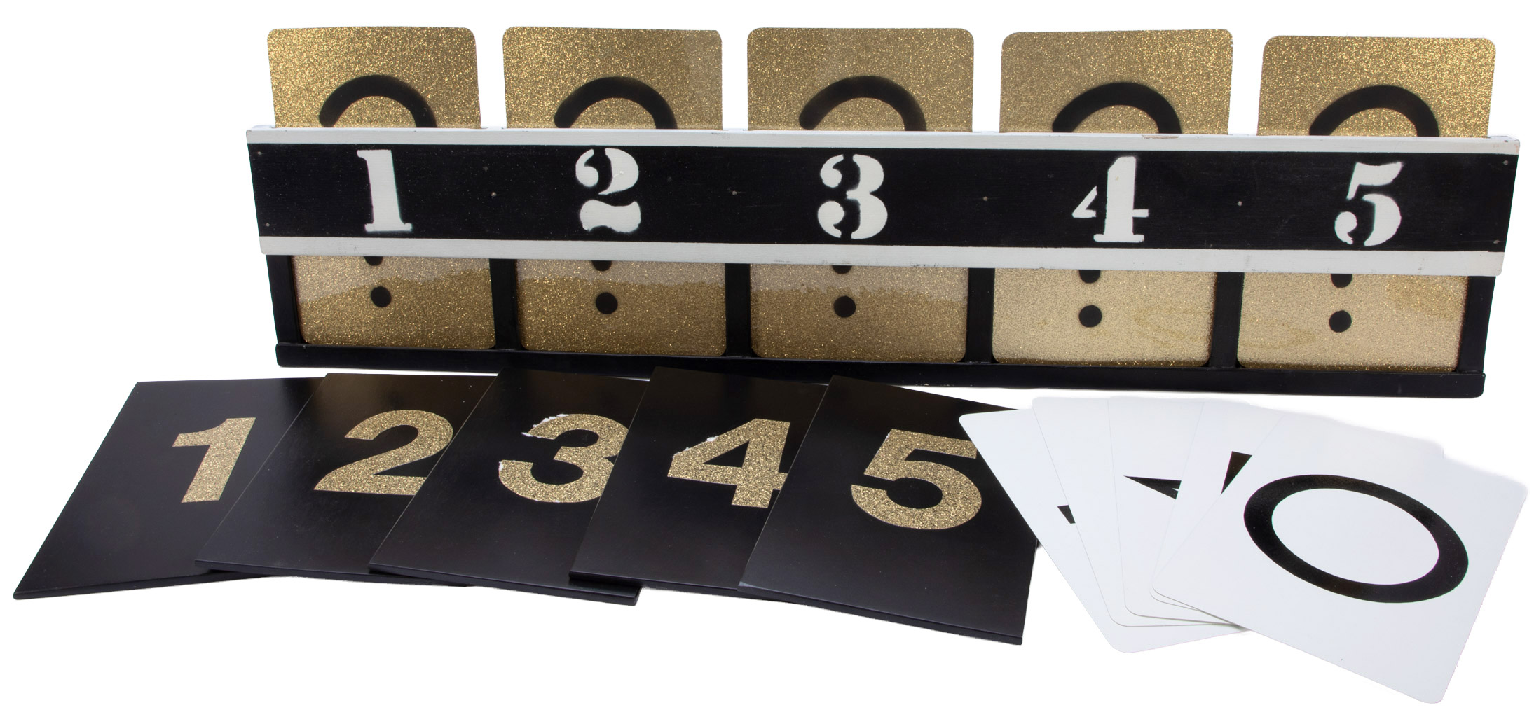 Displayed on the stand are five jumbo playing cards with backs facing outward. The performer proceeds to turn the cards around one by one. Each card is seen to have a different ESP symbol printed on its face. Additionally, five cover panes are shown, each having a number corresponding to one of the five positions occupied by the cards. The cards are removed from the stand, each being handed to a member of the audience. The performer instructs each individual holding a card to return it to the stand, placing it at random in any of the five positions. Afterward, the spectator covers the card with the appropriately numbered panel. While the cards are being replaced, the performer may be offstage or simply have his back turned so as not to view the proceedings. The performer, upon returning, asks the audience to choose a numbered panel. Immediately, he reveals the name of the ESP symbol, which is concealed behind! The cover panel is removed to show that his prediction is correct. The cover panes completely mask the cards so that the faces are neither visible from the front nor the back of the stand. Includes instructions. Very good condition. An uncommon Magic, Inc. product, and cleverly made. One example of this effect sold at auction in 2025 for over $600!