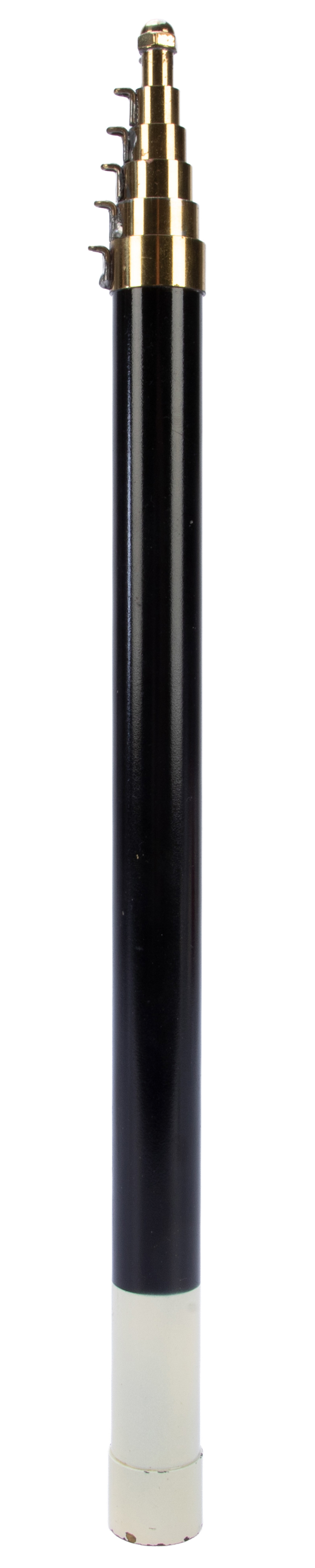 A sturdy telescoping staff allows the magician to produce a giant silk flag from nowhere. Sturdily made from brass and painted on one end to resemble a large magic wand, per Neil Foster's suggestion, so that the "wand" is on display on your table (poking out of a top hat or box) throughout the show, and at the conclusion, when you want to produce the flag, you simply grab the end of the wand and unfurl the flat (and staff) for a wonderful closing to your routine. A small paint chips, else in near fine condition. A very well made Abbott prop.