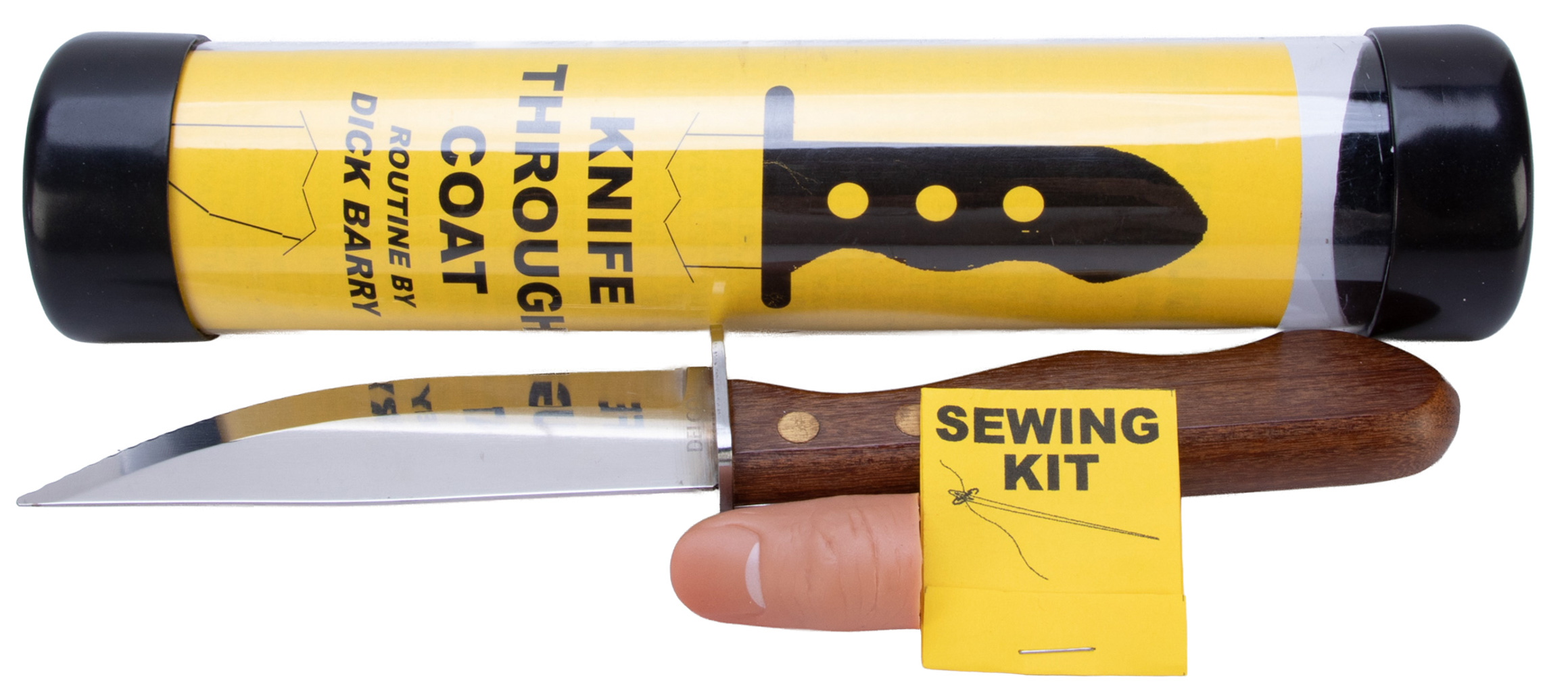 A small folding pocket knife penetrates the fabric of a borrowed coat without harm. Includes the original packaging and instructions. The color of the packaging and the knife handle may vary from the photograph. Small crack to the package, else in very good condition.