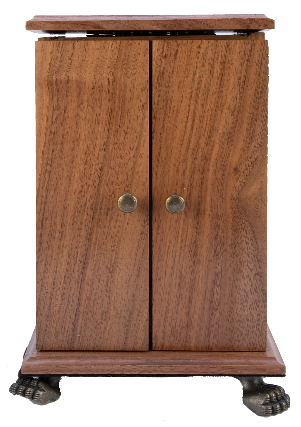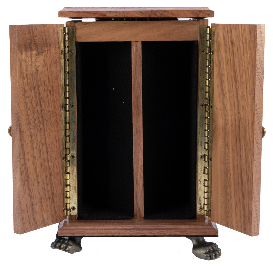 The second Dean of American Magicians, Frederick Eugene Powell sketched what he called the "Mysterious Cabinet" in his journal dated in the early 1870's. The cabinet utilized the principle known as "black art" giving the appearance of an empty cabinet. This principle has been used in many effects, from square circles to professional stage illusions. One of the legs slightly bend, small chip to the finish, else in good condition.