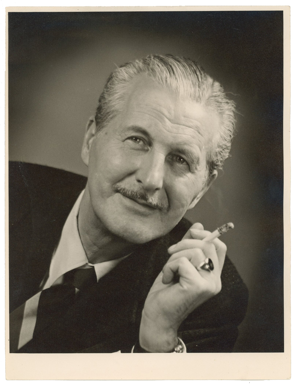 Black and white portrait of Dai Vernon holding a cigarette. This vintage photograph is the image most famously used on the jacket of the Dai Vernon Book of Magic. Corners curled a bit, else in very good condition.