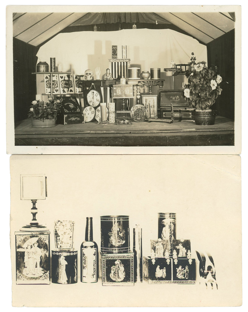 Real photo postcards of Victor Barbour’s Okito apparatus collection. Barbour was a wealthy amateur magician who was perhaps Okito's best customer. Glue residue to verso, mild toning, else in good condition.