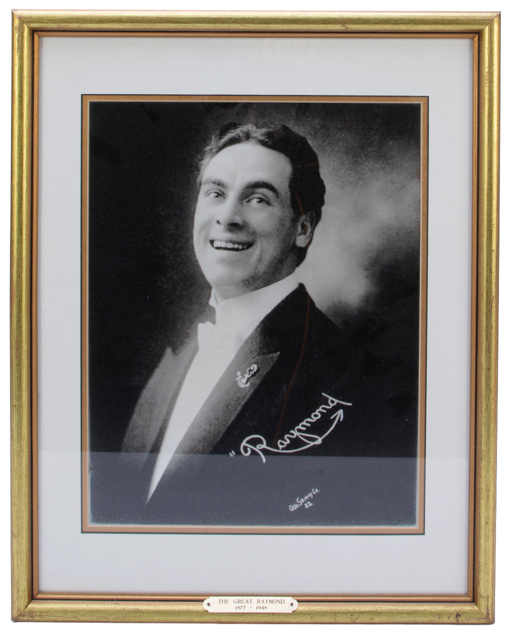Modern oversize portrait of The Great Raymond, the famous illusionist hailing from Ohio. Handsomely framed with a plaque at the bottom reads “The Great Raymond 1877-1945.” From the collection of Ray Goulet. Near fine condition.