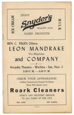 Program for Cardini in performance on the Christmas Cruise of the R.M.S. Fanconia, Fanconia Revue. Two holes punched at top edge, discoloration to one side. Very good condition.