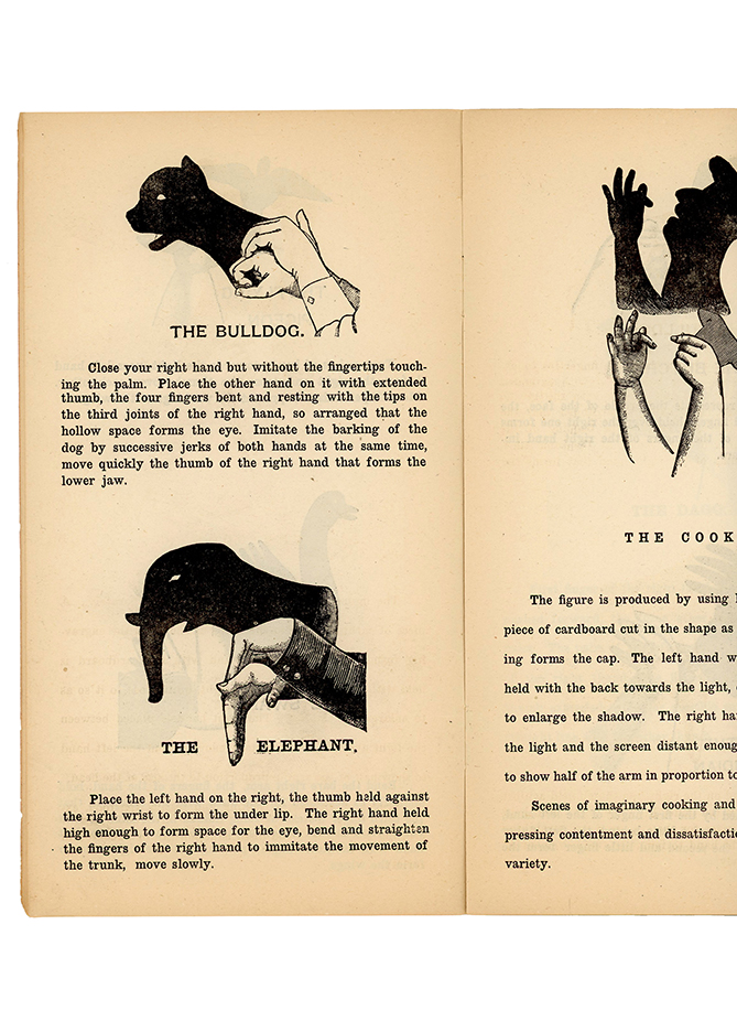 Small booklet on shadowgraphs and how to make them. Illustrated. Chips to covers and spine, else in good condition.