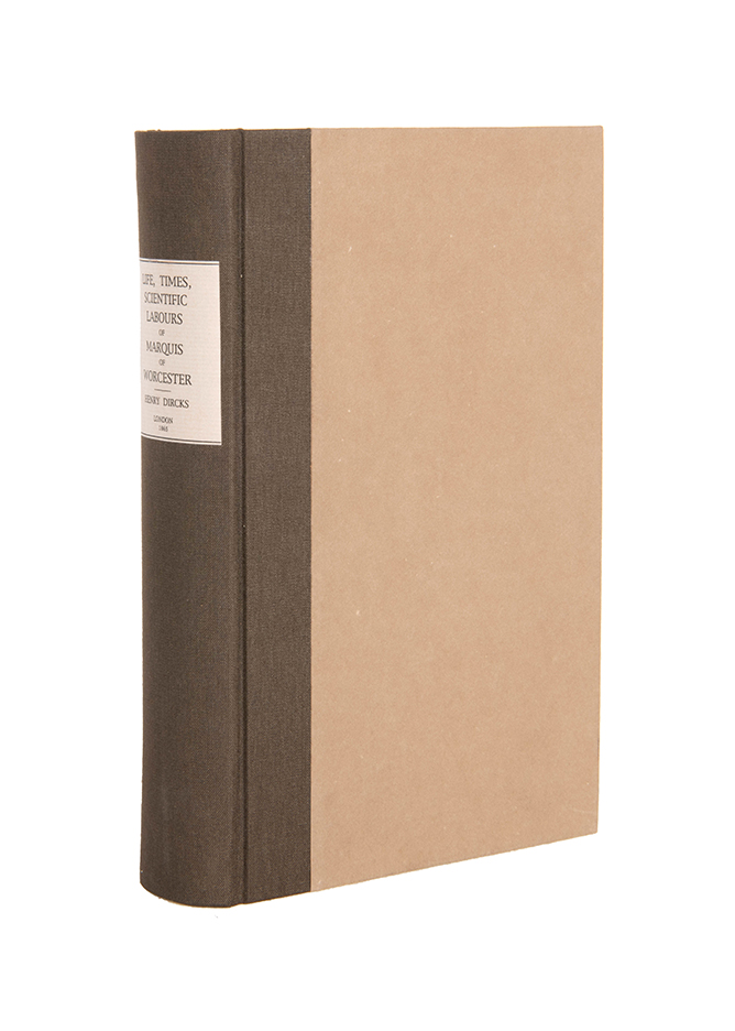 The Life, Times, and Scientific Labours of the Second Marquis of Worcester to which is Added, a Reprint of His Century of Inventions, 1663, with a Commentary Thereon. Brown cloth over brown boards. Marbled page edges. Pictorial frontispiece, illustrated, 624 pages. Very good condition. Toole Stott 815.