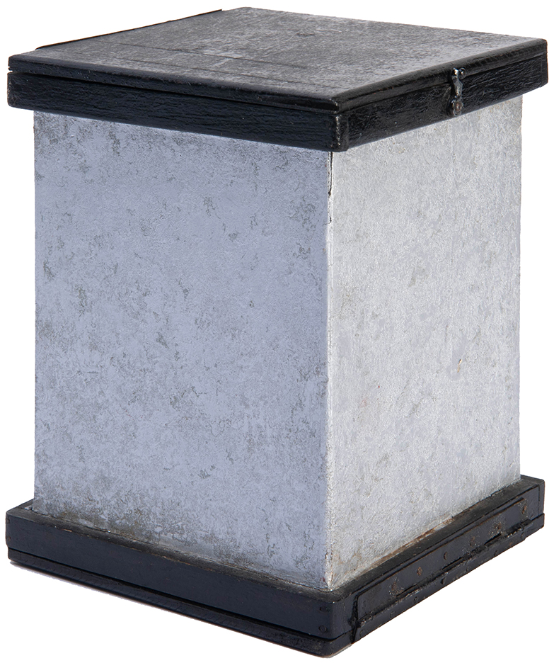 The box mysteriously changes one item to another, causes items to vanish, or appear. Simple method, wooden construction. Some wear, tip of one of the hinges chipped, else in good condition.