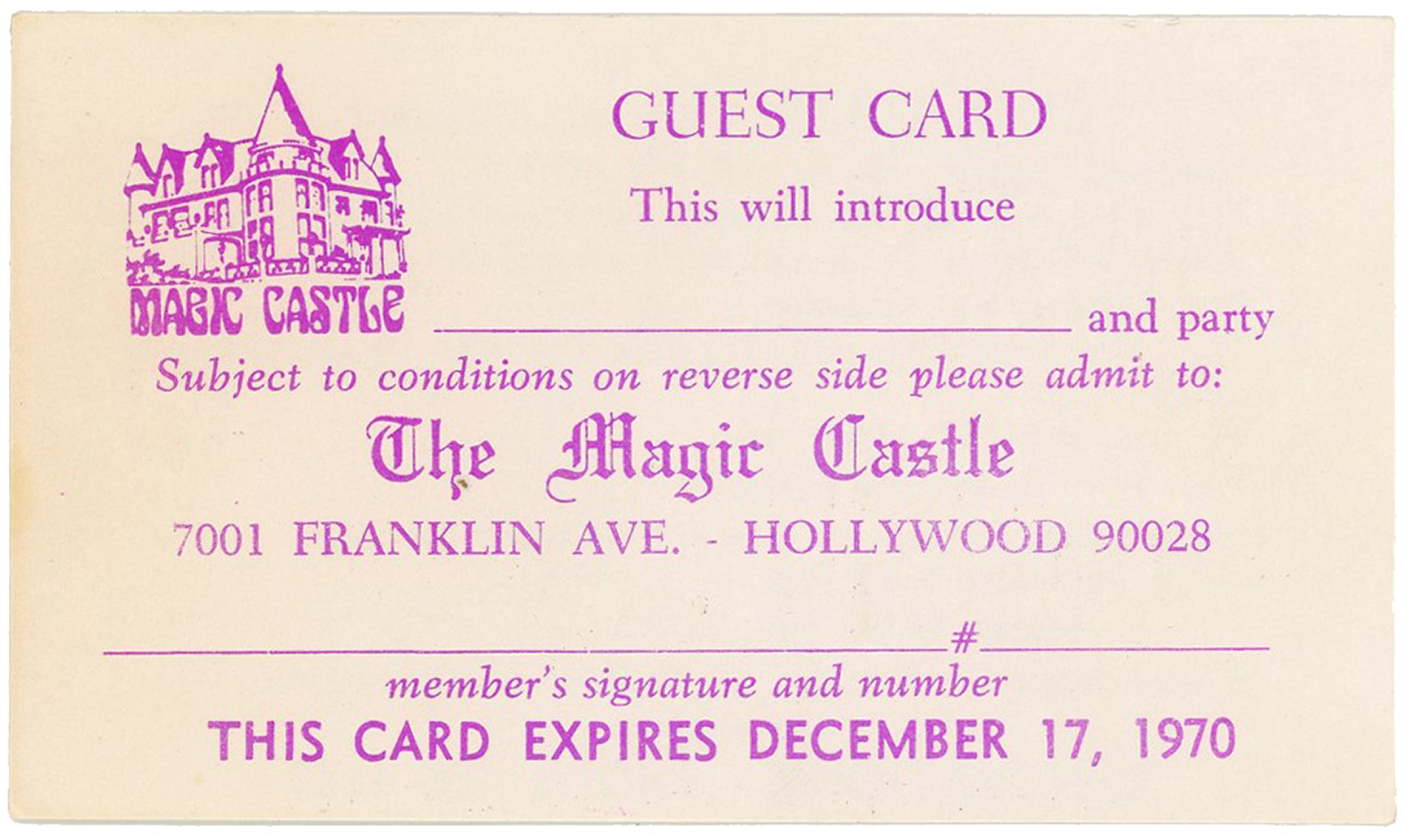 Guest card for the Magic Castle with the expiration date of December 17, 1970. Mild toning, else in very good condition.