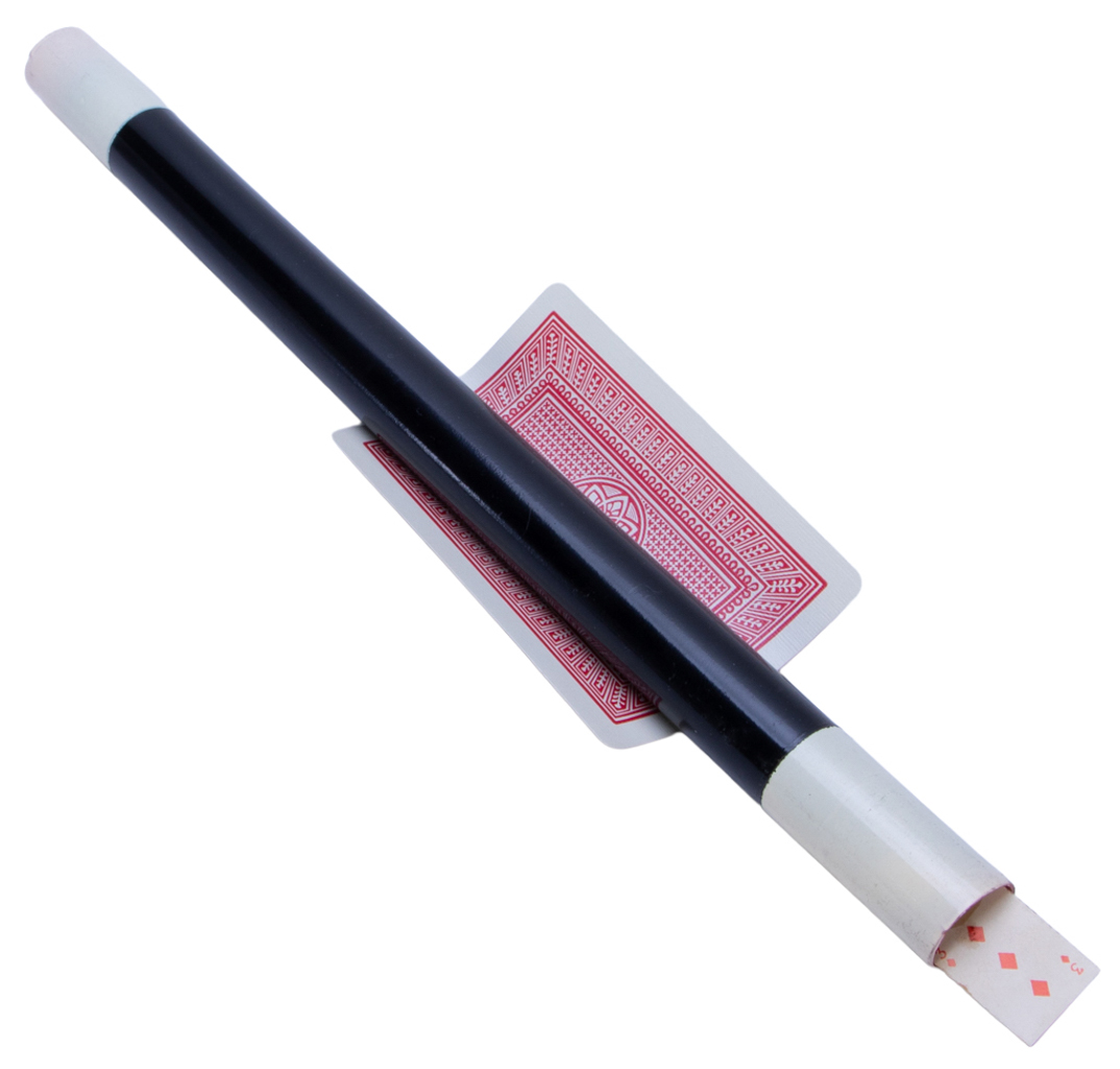 The spectator’s selected card floats down from the space and appears on the tip of the wand. Includes instructions. Cuts to one end of the wand, fair condition.