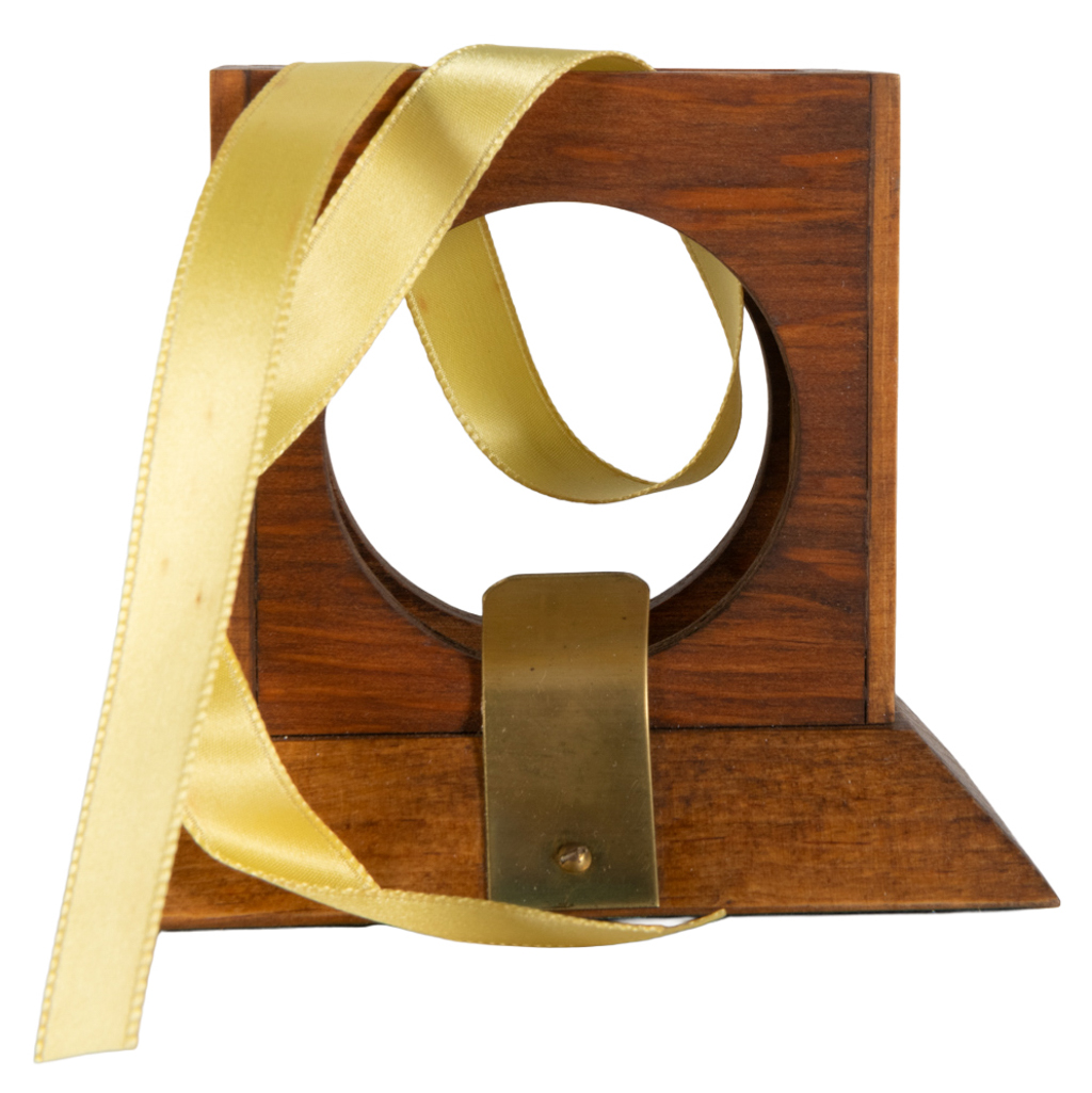 A classic card control effect. Two cards are selected by audience members and returned to the deck. A piece of ribbon is placed over the opening of the houlette, pushed down as the deck of cards is placed inside. Cards are removed until a spectator calls "Stop!" and the deck is raised by pulling on the ribbon. The next two cards in the deck prove to be the selected cards. Pieces examinable. Includes the original box and instructions. Very good condition.