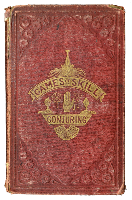 Games of Skill, and Conjuring: Including Draughts, Dominoes, Chess, Morrice, Fox and Geese, Conjuring, Legerdemain, Tricks with Apparatus, Tricks with Cards, Boat-Building. Red embossed cloth with gilt stamping, engraved frontispiece, illustrated, 128 pages. Repaired front hinge, spine weak, cloth darkened with some soiled areas. Wear to boards, particularly at corners. Pages generally clean with little to no browning or foxing. Good condition overall. Toole Stott 315,