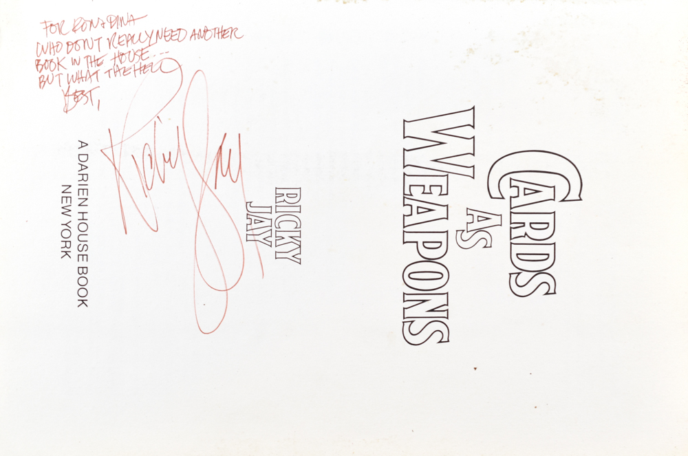 Pictorial stiff wrappers, illustrated, 95 pages. Signed and inscribed on title page, "For Ron and Dina, Who don't really need another book in the house but what the hell, Ricky Jay." Some general edgewear, front hinge a bit loose. Good condition.