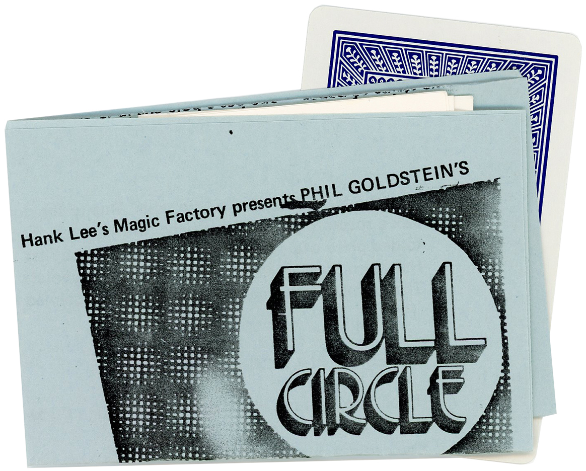 A strip of paper is displayed, with a circle cut out of it. The circle is handed to a spectator. The strip of paper is folded and placed to one side. A deck of cards is brought out, and one card freely chosen and replaced in the deck. The circle is now vanished in a flash of fire. Looking through the deck, one card is found to have a paper circle attached to its back. It is the selected card! For an added climax, the circle vanishes from the back of the card, and when the paper is unfolded, the hole has vanished – the circle has returned home! Includes instructions. Very good condition.