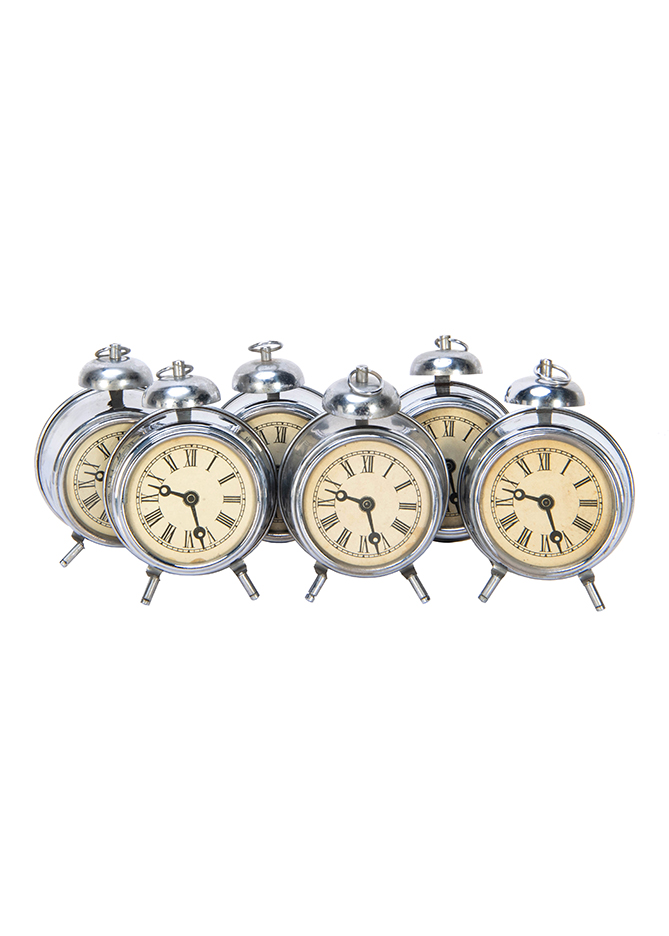 Set of six clocks for the production from a borrowed hat. Some wear, else in very good condition.