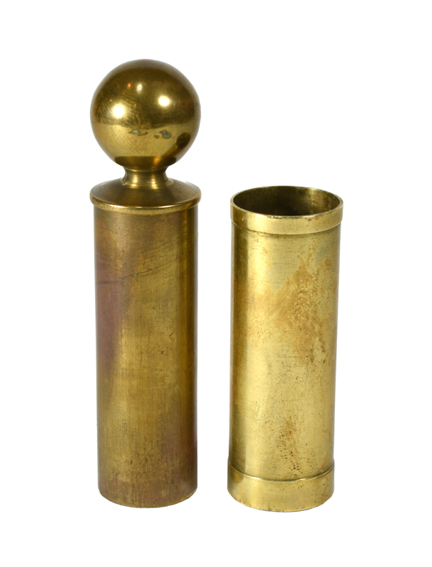 A large, double load plug box, precision-made of brass. Complete, very good condition.