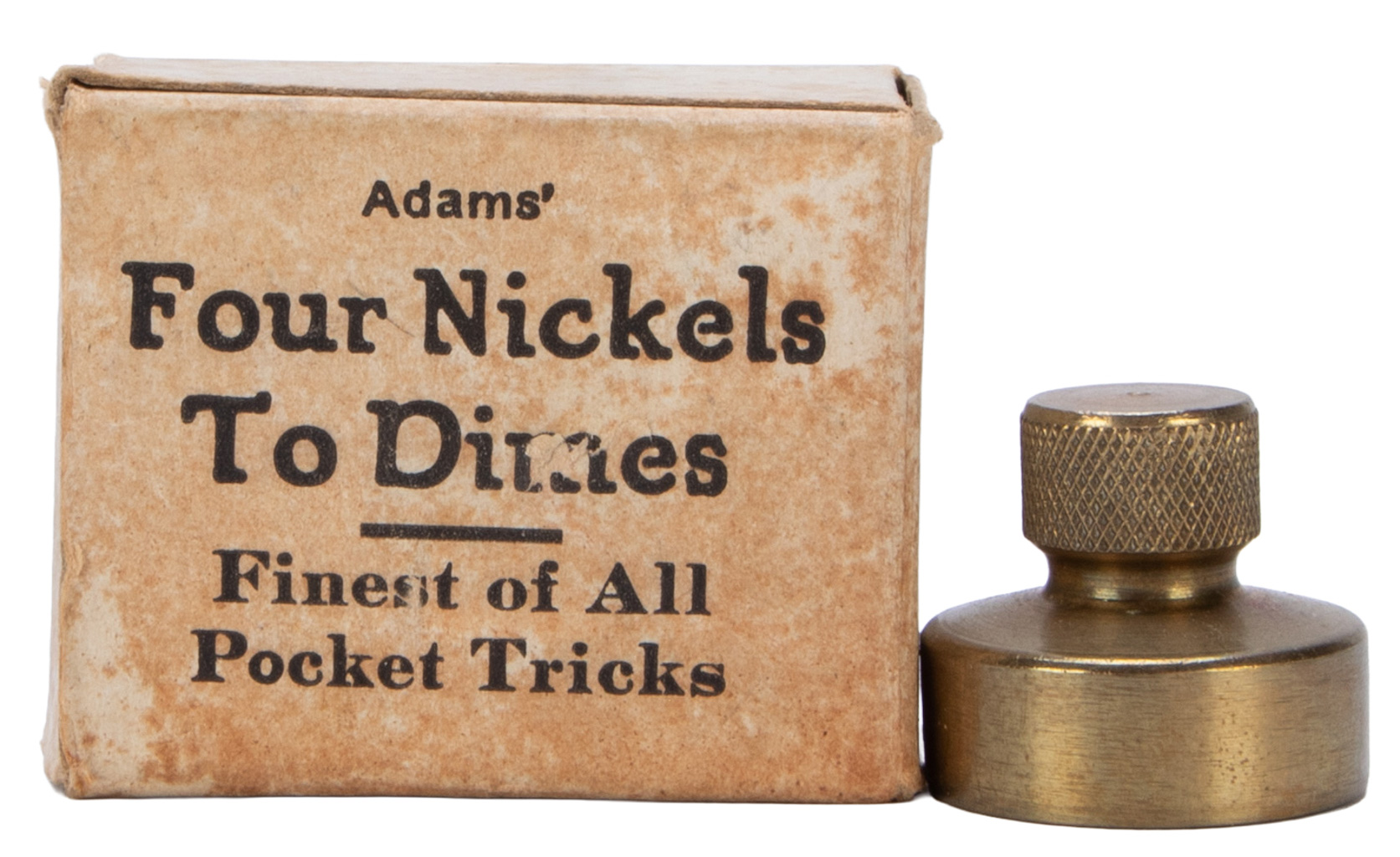 Four nickels change into four dimes. Includes the original box. Very good condition.