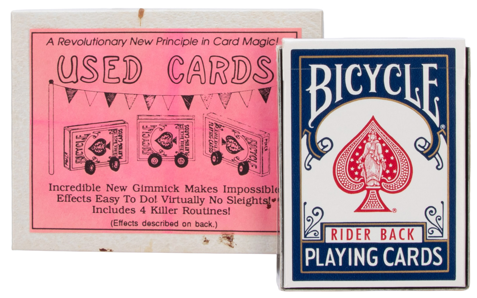 A spectator buys a used card from you, the friendly used car salesman. He signs the back of the card and remembers it’s suit and value. You fax a copy of the card to the department of used cards. “So if you lose a card, there will instantly be a copy on file.” As an example, you have the spectator put his card into the deck and cut it several times. The cards are returned to its case and the deck is left in plain view on the table. Next, you bring out a deck marked, “Department of Used Cards.” The cards are removed and spread face-up. You look for the spectator’s “serial number.” Finding it, you state, “See, the fax has already arrived.” You turn the card over to reveal the spectator’s signature on the back of the card! “It even has an exact copy of your signature!” Includes instructions. Very good condition.