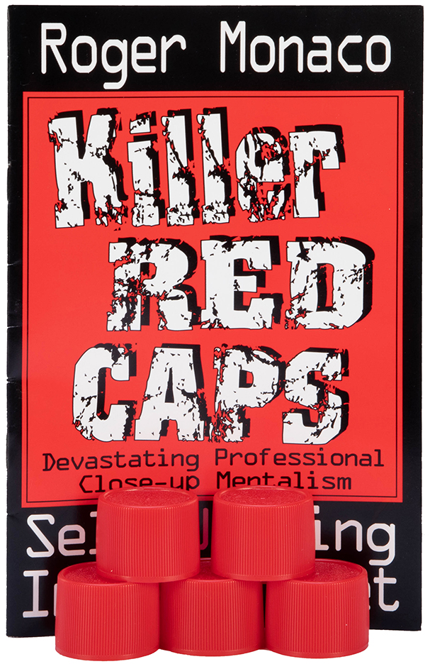 Five red plastic caps are on a table. A spectator is instructed to place a small object under any one of the caps after the performer has left the room. The caps can be mixed, or moved, it’s up to the spectator. The performer returns. Instantly, he knows which cap contains the object! In its barest form; it’s only a one-in-five chance. But as we add the smoke, and presentation, the effect soars. Includes instruction booklet. Very good condition. A diabolical trick that received rave reviews from nearly everyone who encountered it when it was first released.