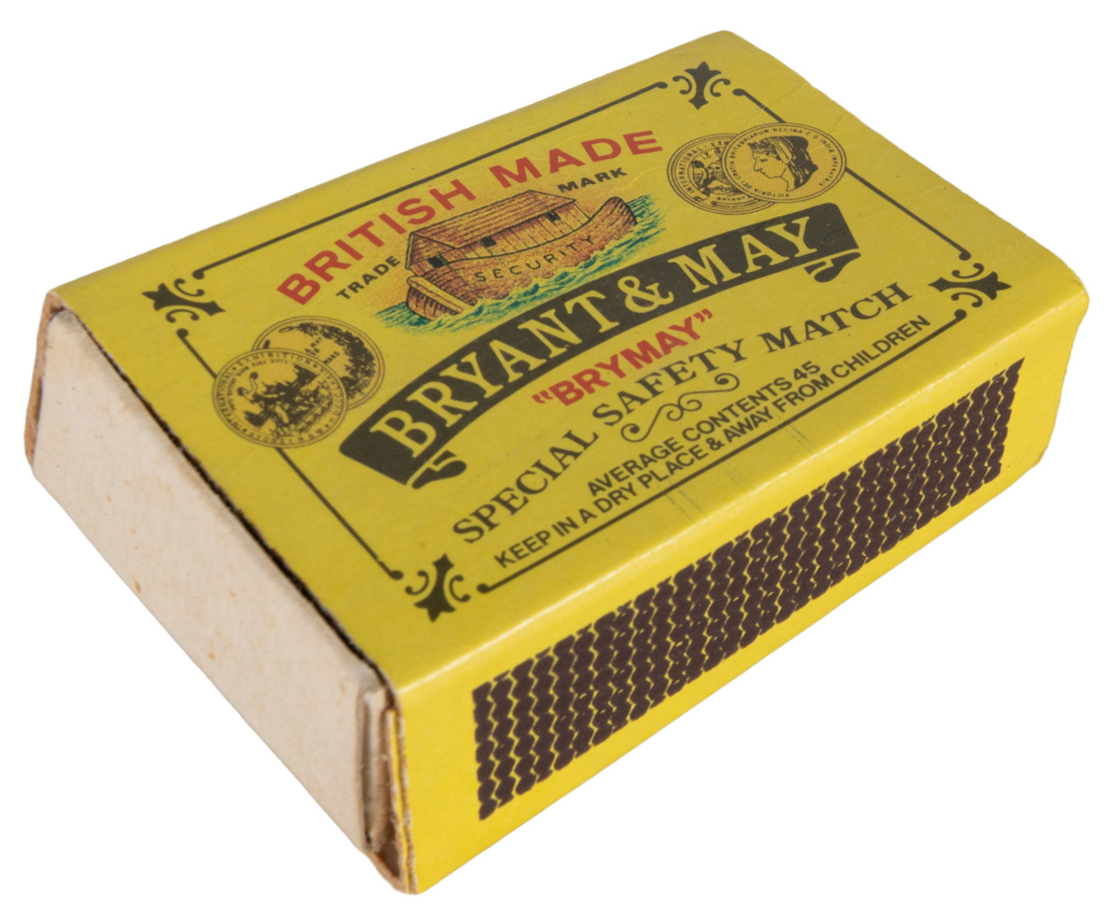 A drawer-type matchbox opens and closes itself mysteriously with no apparent physical help. Includes instructions. Box lost its shape a bit, fair condition.