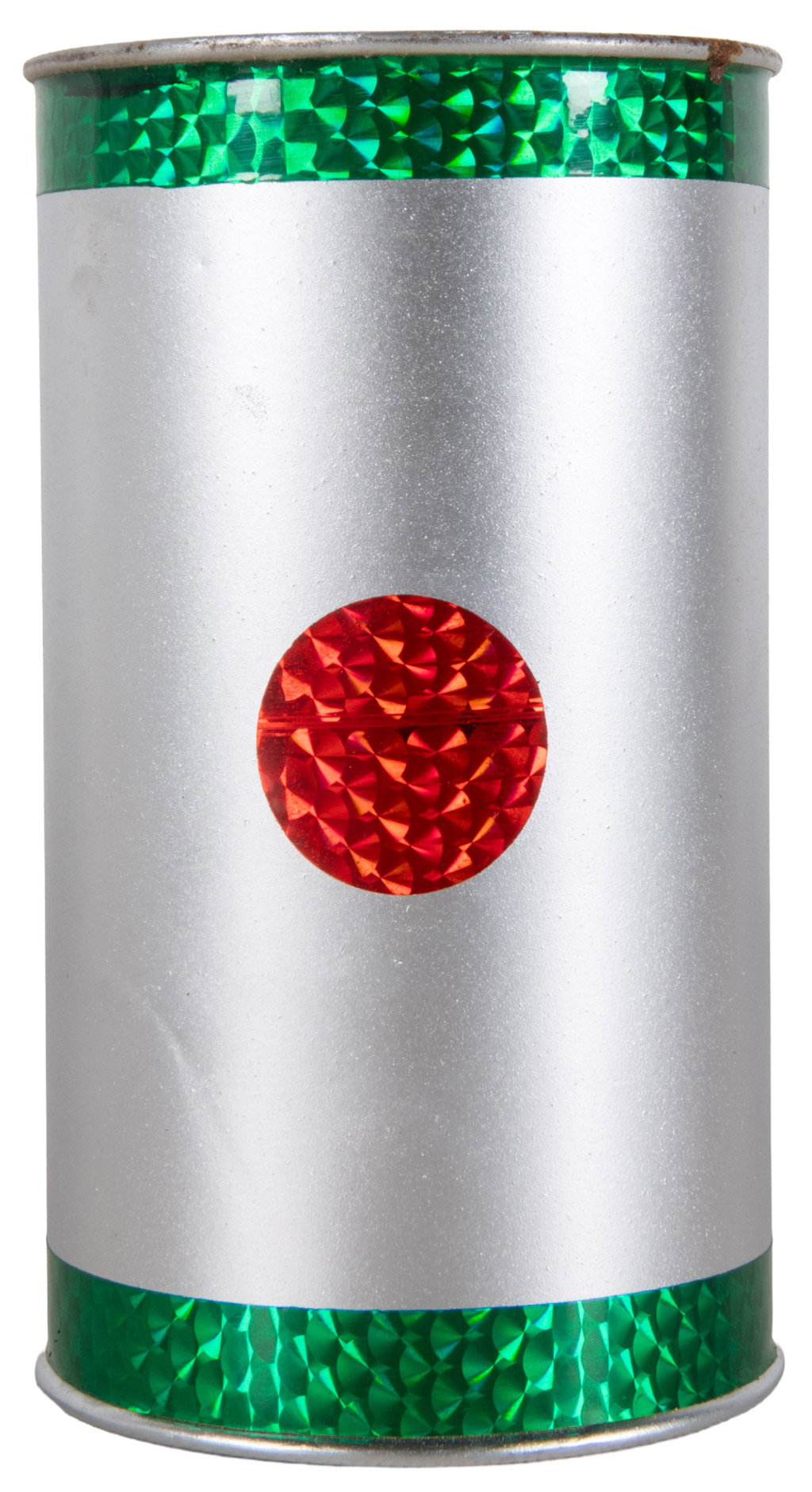 The magician produces a number of silks, currency, etc., from a tube which has been clearly shown empty and sealed at both ends. Includes instructions. A few rust spots to the interior of the tube (which could be sanded away), fair condition.