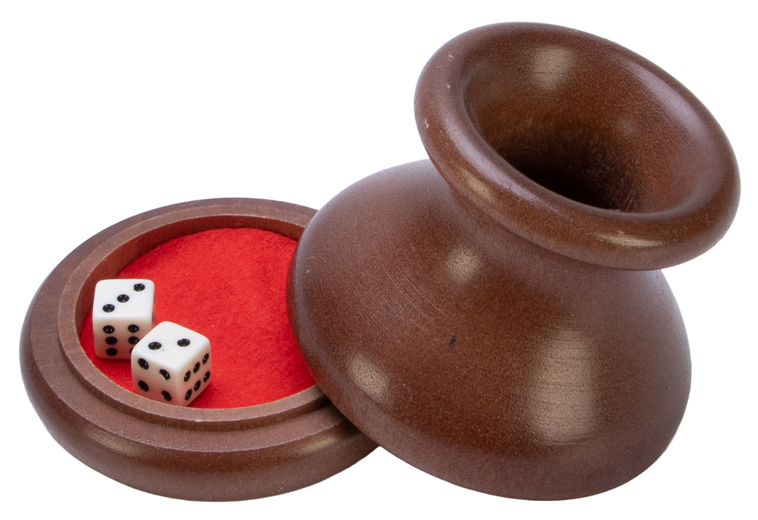 The dice are thrown into a wooden vase by the audience and the vase is shaken well but the performer can tell the numbers of the dice in a moment. Very good condition.