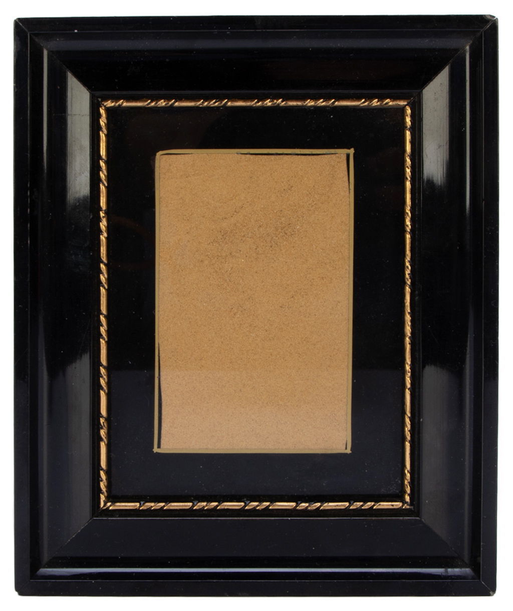 A playing card or photograph appears within the empty frame. Quick working action; very good condition.
