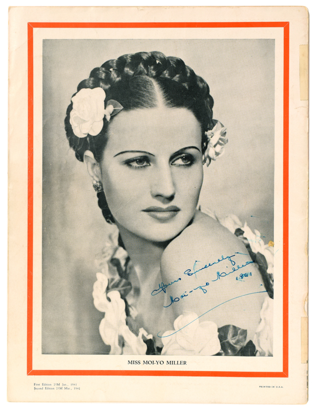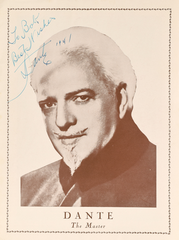 Pictorial wrappers featuring Dante on the front and Moi-Yo Miller on the reverse. Well illustrated, 24 pages. Signed and inscribed by Dante (first page) and Moi-Yo Miller (back wrapper), each signature dated 1941. Wrapper worn with some tears, toning on pages. Good condition.