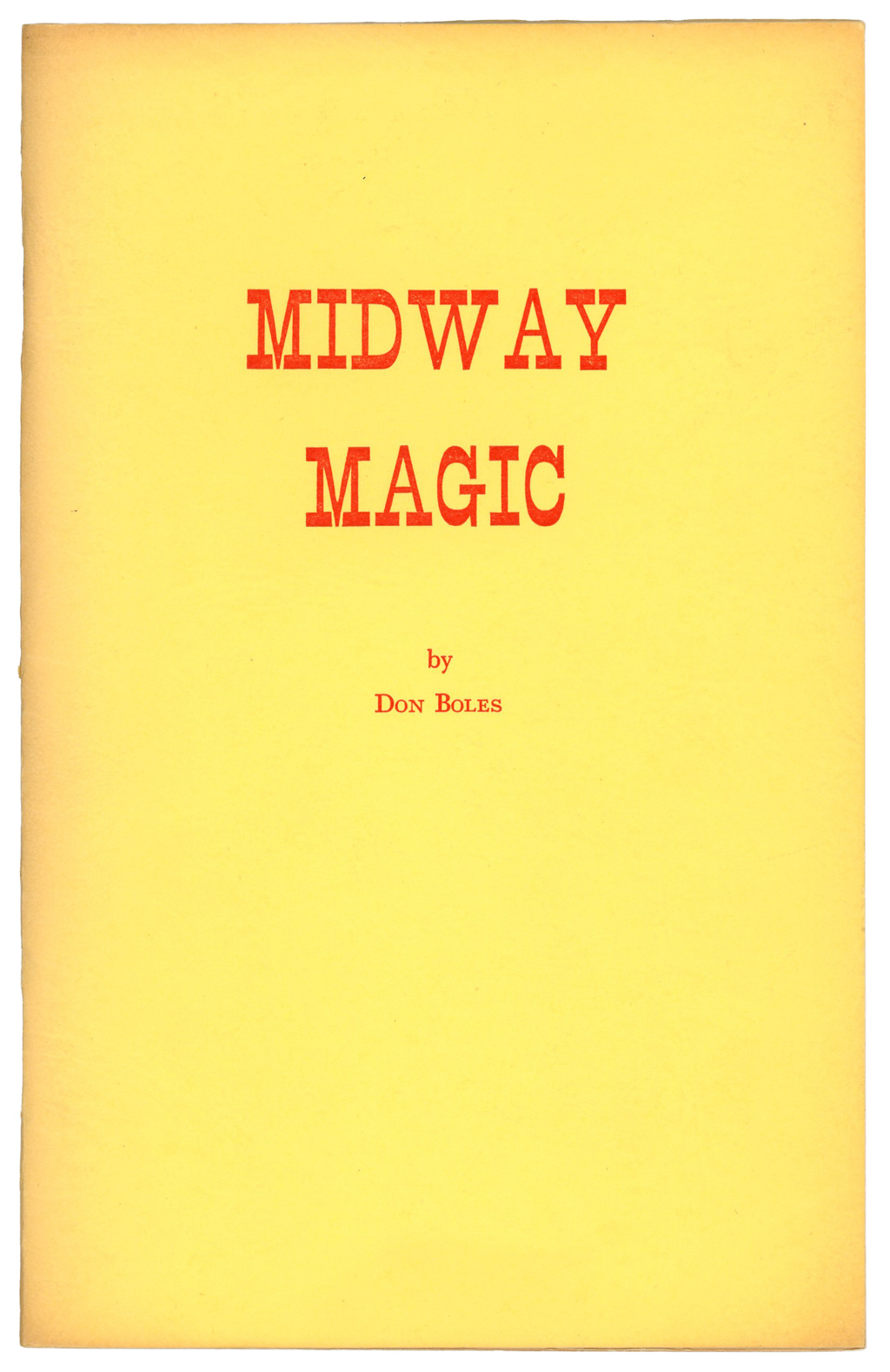 Yellow wrappers, 51 pages. Mild toning, else in very good condition. Classic pamphlet on magic of the midway and carnival type.
