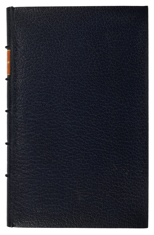 Custom fine binding. Full dark blue leather, raised spine with red title morocco lettered in gilt. Marbled end papers, gilt top edge. Retaining original pictorial wrappers, illustrated, 89 pages with two leaves adverts at rear. Wear and discoloration to original wrappers, pages toned. Very good condition.