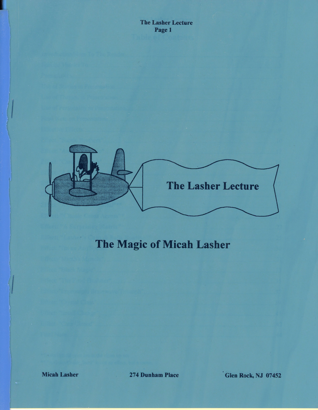 The Magic of Micah Lasher, The Lasher Lecture