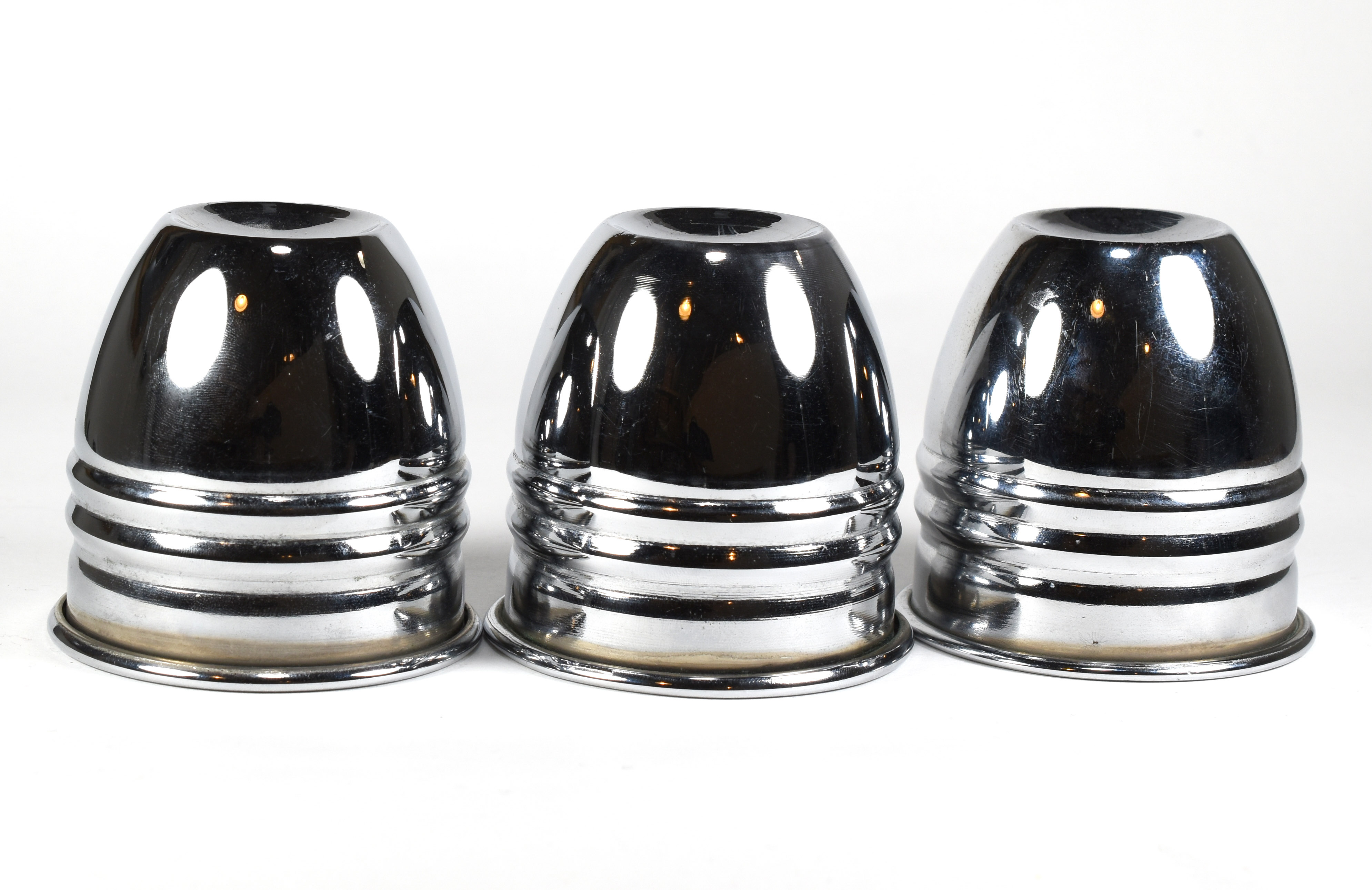 Set of Paul Fox style cups made with a double-bead mid-line. The beads in this example are less rounded than in other sets, with an bit of an angle to the edge. Some wear, but generally in very good condition.