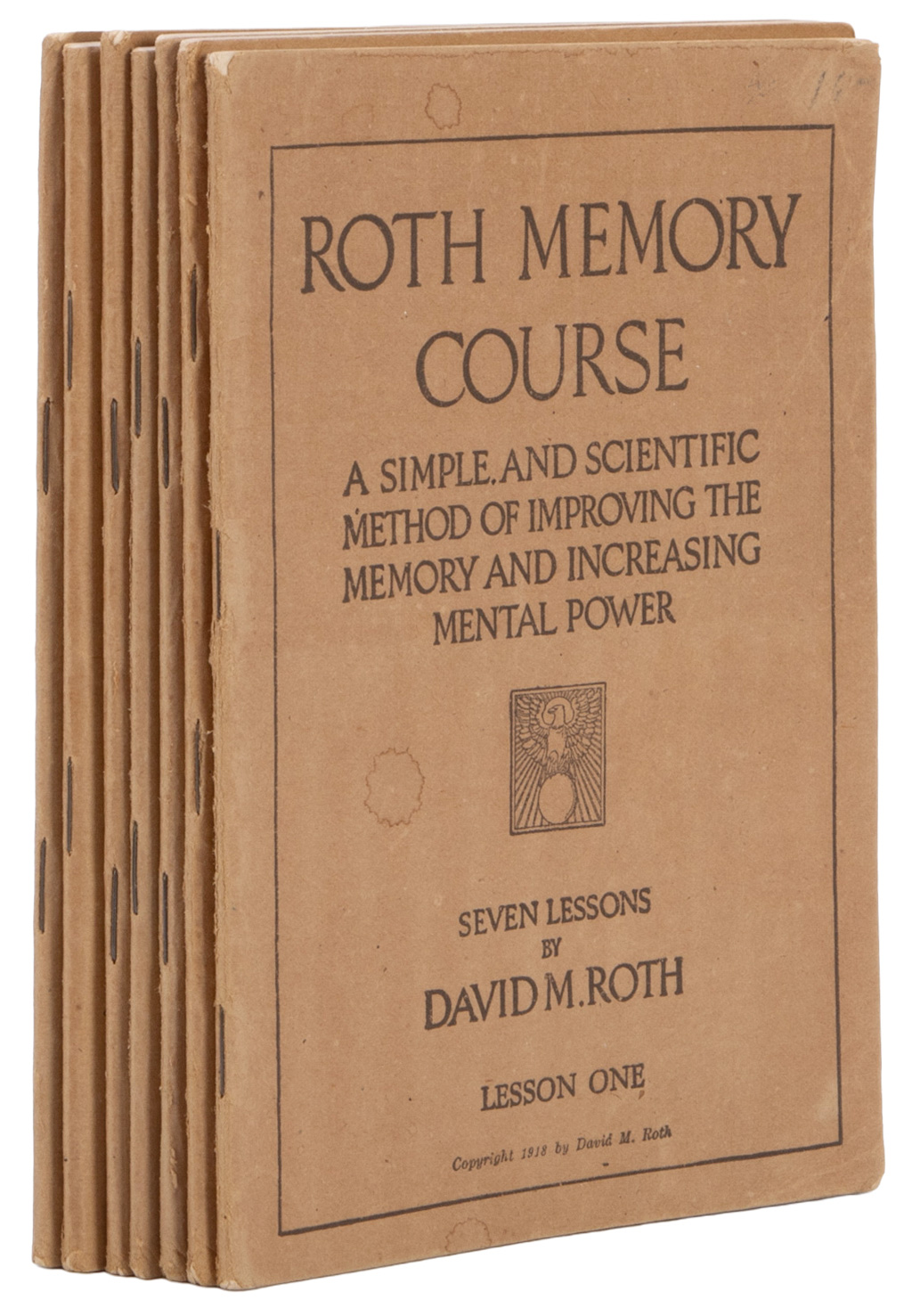 Lesson one to seven of Roth Memory Course. Wrappers, illustrated. Toning and mild wear, else in good condition. Long considered a famous course on how to train your memory, and perhaps the foundational text on which Harry Lorayne and others built their own popular systems.