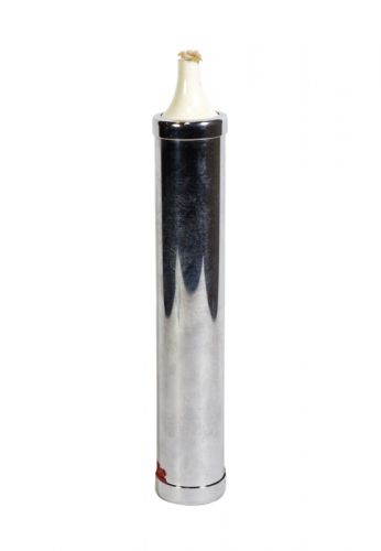 Candle tube consists of metal tube with two drum head caps and shell candle. Some paint chips to candle, else good.