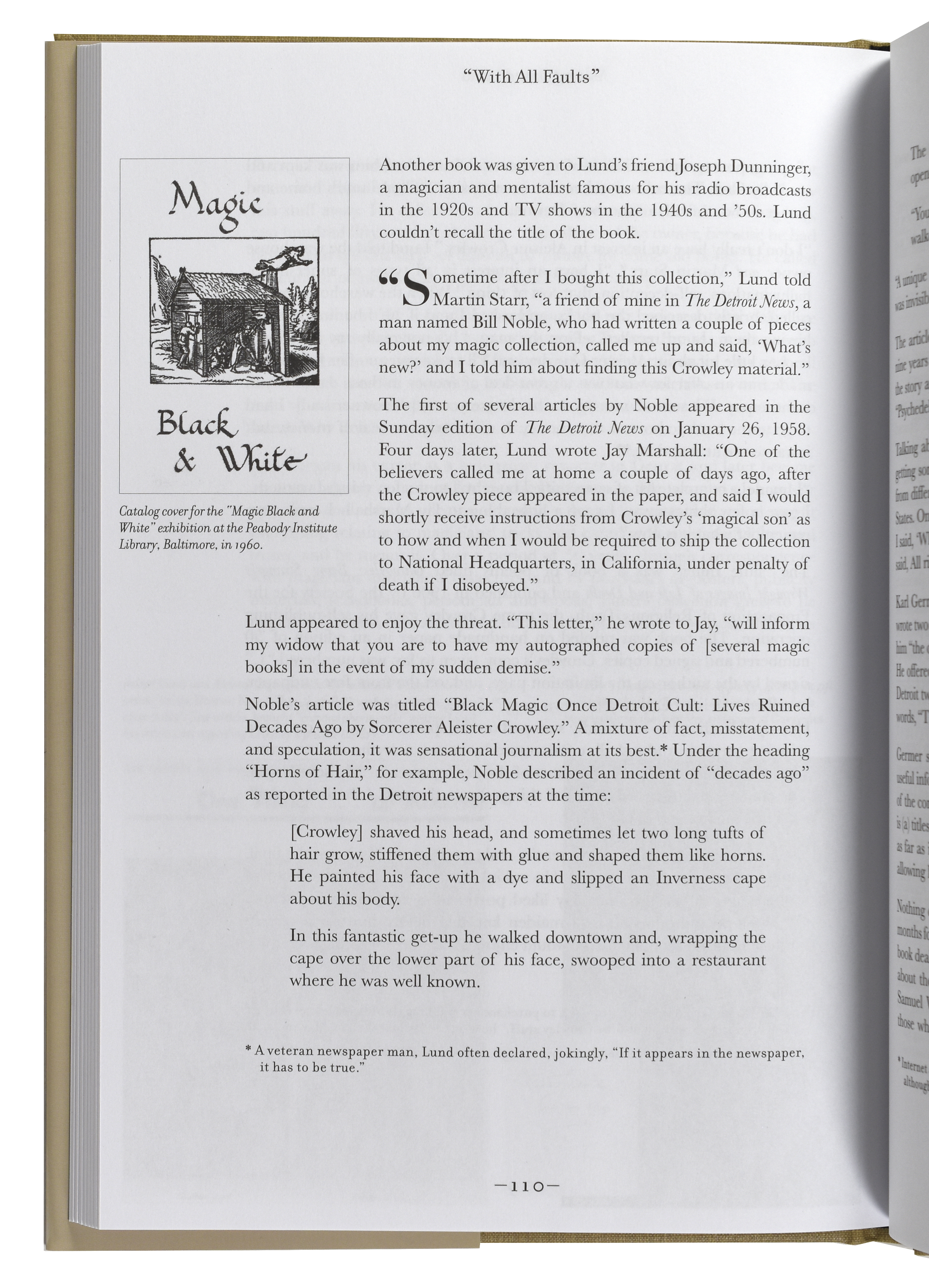 Steinmeyer goes on to say, "...while these 13 fascinating chapters are focused on creaky library shelves of curious books, they are invariably about the people who wrote them, published them, sold them, hoarded them, and loved them for various reasons. Because of David's career and interests, magicians will find that those library doors continually open to discover many of our dear friends: Jay and Frances Marshall, Bob and Elaine Lund, Ricky Jay, David Copperfield, Robert Parrish, Okito, Thurston, and Nelmar, among others."